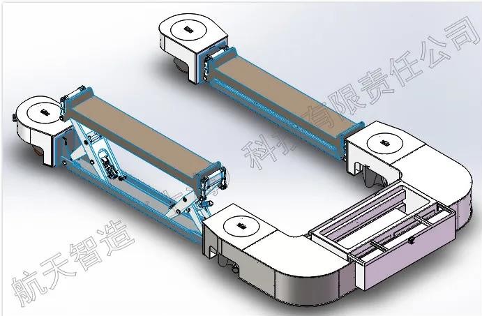 某大型客機發(fā)動機自動安裝車,該項目主要用于某大型客機發(fā)動機的拆裝,叉式環(huán)抱式車體,可將發(fā)動機連其托架一起舉起并移動至發(fā)動機安裝工位,可精準調(diào)整姿態(tài),并有自適應(yīng)浮動系統(tǒng),可保證發(fā)動機順利便捷的安裝及拆卸。