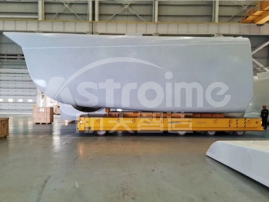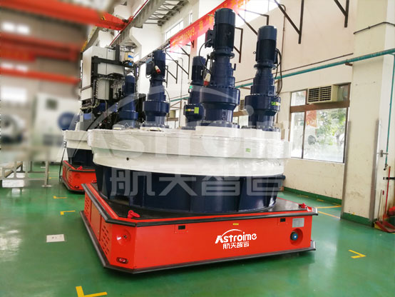 航天智造為某風(fēng)電企業(yè)研制的200噸全向舵輪AGV,載重量大、轉(zhuǎn)向靈活、定位精度高、操控方便,滿足客戶大型風(fēng)電的運載要求。