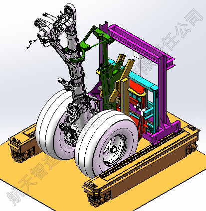 該項(xiàng)目為某大型客機(jī)專門定制的起落架安裝裝置,采用麥克納姆輪做為移動機(jī)構(gòu)可任意方向高精度的移動,配置六自由度調(diào)姿機(jī)構(gòu)完成精確安裝對接。全向移動平臺采用我司成熟的麥克納姆輪技術(shù),能夠?qū)崿F(xiàn)高精度、零回轉(zhuǎn)半徑的全向移動,由于在起落架安裝環(huán)節(jié)現(xiàn)場空間比較小,裝配環(huán)境復(fù)雜,用麥克納姆輪組作為移動機(jī)構(gòu)可以完全解決這個(gè)問題;調(diào)姿部分以伺服電機(jī)控制用于實(shí)現(xiàn)精確的六自由度調(diào)姿,以便于在起落架安裝時(shí)實(shí)時(shí)精準(zhǔn)的調(diào)整安裝位置。