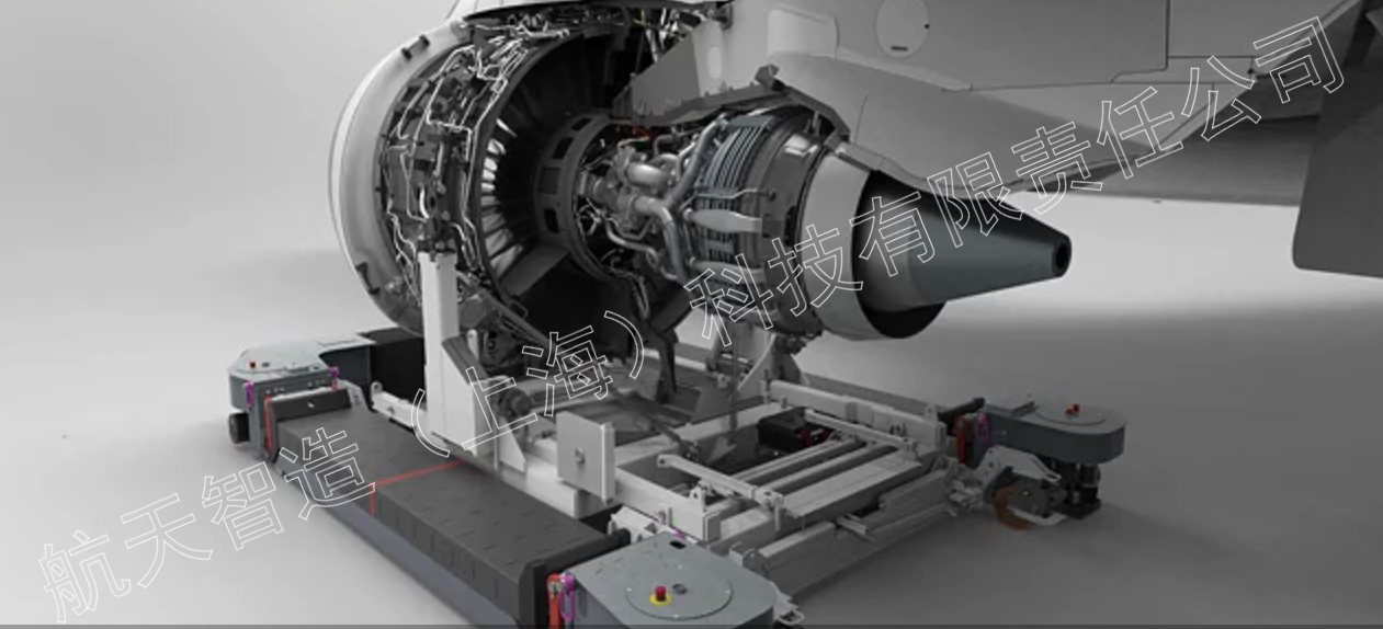 發(fā)動機(jī)安裝車是一款我公司自主研發(fā),可滿足某大型客機(jī)發(fā)動機(jī)部段LEAP-1C在吊掛上快速安裝、拆卸的智能安裝車,安裝車以舵輪全向移動平臺(車)為基礎(chǔ),配置一套集升降、俯仰等功能為一體的多自由度調(diào)姿平臺,結(jié)合數(shù)個(gè)激光傳感器和視覺相機(jī)組成的視覺監(jiān)測系統(tǒng),快速而精準(zhǔn)的完成發(fā)動機(jī)裝配及拆卸工作。