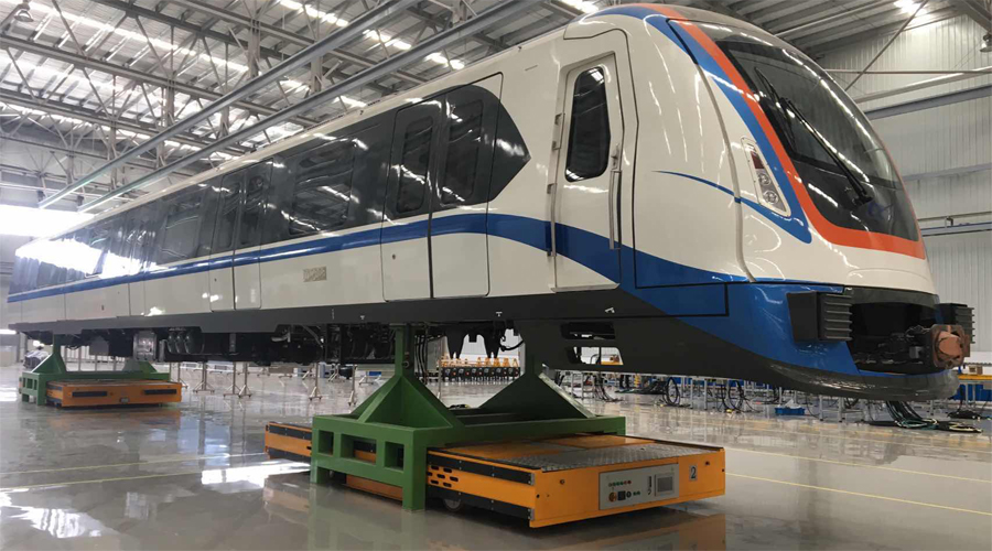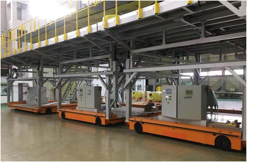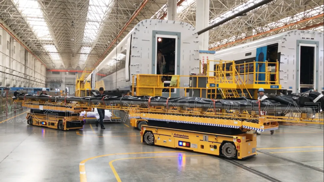 比如用于軌道車輛整車轉運的“2x30T全向舵輪車”、用于衛(wèi)星艙轉運的“3x40T全向舵輪車”、用于動車車體底架轉運的“2x5T麥克納姆輪式車”、用于動車車底線槽轉運的“2x2T麥克納姆輪式車”、用于機塢轉運的的“3x5T麥克納姆輪式車”,都使生產(chǎn)工藝發(fā)生了革命性的變化。