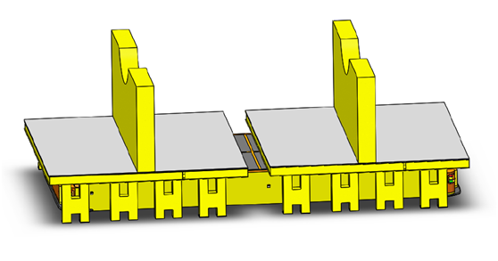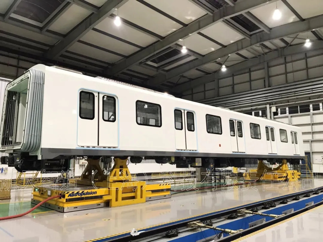 此套車(2臺,雙車聯(lián)動)用于軌道車輛的車間內運輸,具有全向移動、定位精度高(0.5mm)、聯(lián)動精度高、公鐵兩用、AGV、適應地面能力強、活動范圍不受限等優(yōu)點。目前在軌道交通行業(yè)已全面應用。